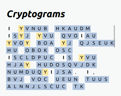 Cryptograms with long-form public domain texts for more satisfying frequency analysis!